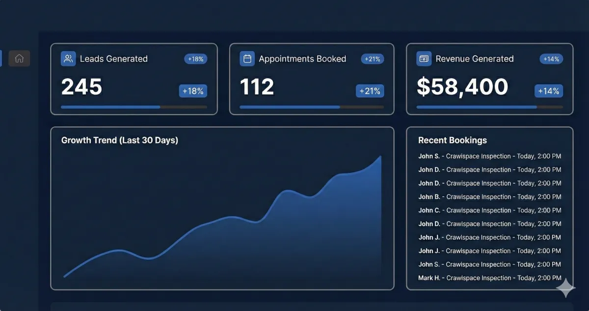 We analyze your service area and competitors, then launch Google Search, LSA, and Facebook campaigns that attract homeowners actively looking for foundation, waterproofing, or crawl space solutions — not tire kickers.